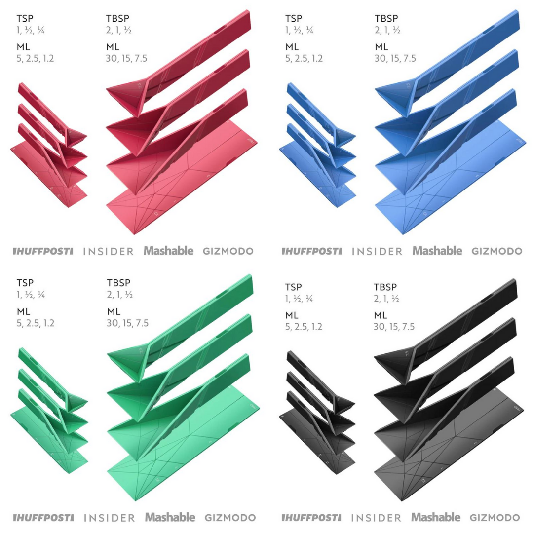 Each set covers 6 measurements, ranging from 1/4 tsp to 2 tbsp, all in just 2 foldable spoons.
