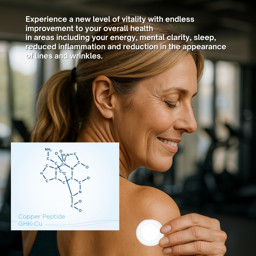 AGE REVERSING PATCH is a cutting-edge wearable patch that combines GHK-Cu copper peptide with light therapy to stimulate dormant stem cells, enhance cellular repair, and promote overall vitality. It works at the cellular level to reverse visible signs of aging, boost energy, and improve recovery.