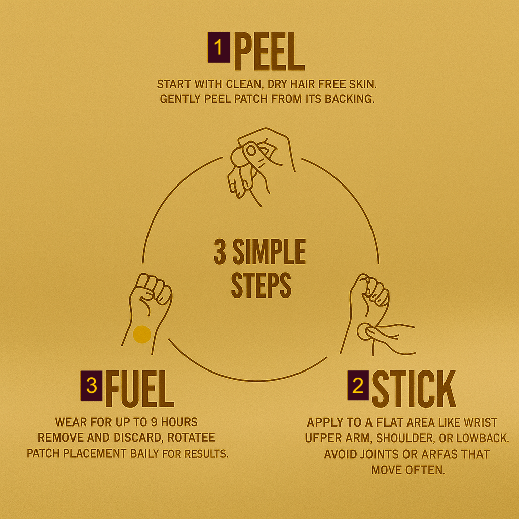 One simple patch for 8 hours of steady support — no pills, no taste, no hassle.