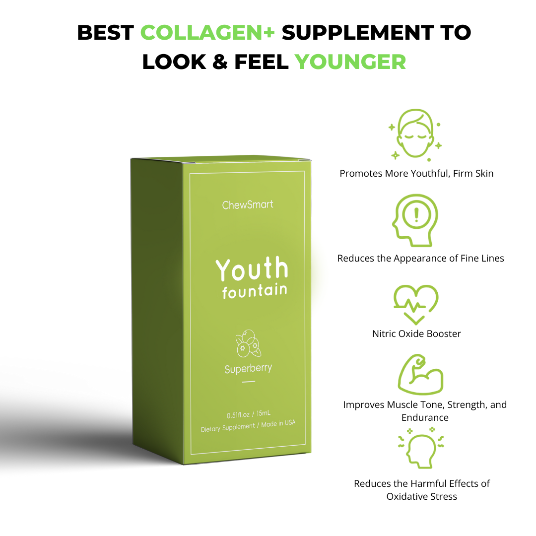 Youth-Fountain boosts nitric oxide levels, supports healthy blood flow, and enhances vitality with a blend of collagen peptides, antioxidants, and nutrients for improved circulation, stamina, and overall well-being.